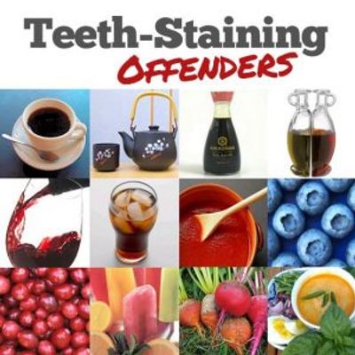 . Anything that can stain a white shirt will more than likely stain your teeth. Use a whitening toothpaste to help reduce. Avoid these foods after teeth whitening because they are particularly staining.